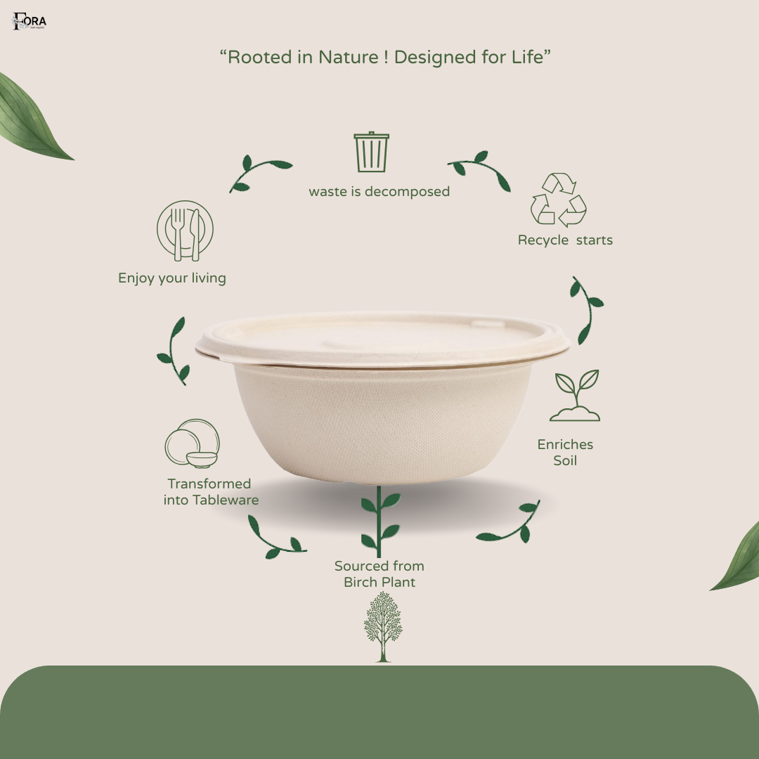 Designed for convenience, hygiene, and sustainability, FORA’s 350ml compostable bowl with lid is ideal for serving meals, snacks, and desserts with care. Made from eco-conscious sugarcane bagasse, its round shape and secure lid offer both style and practicality—perfect for on-the-go meals or takeaway servings.