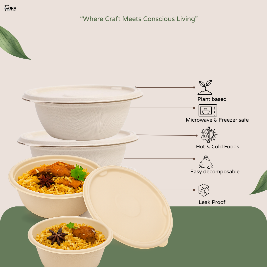 Our bagasse bowls with lid are built for convenience without compromise. Whether you’re reheating in the microwave or storing in the freezer, they stay sturdy and toxin-free. Unlike traditional disposables, they never leach chemicals or alter the flavor of your food. Just safe, sustainable, and designed to care—for your food and the planet.